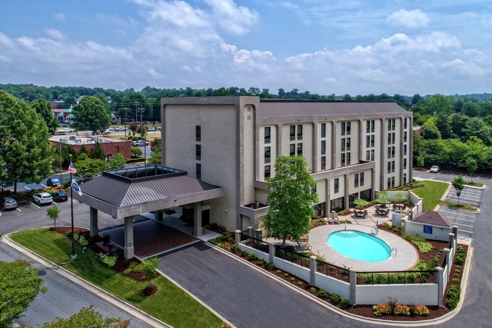 A 30-story mixed-use development in downtown Louisville consist of 612 hotel suites and 225. This hotel in Matthews is just off one of the main roads maybe 15-20 minutes south of downtown Charlotte in a very nice community.